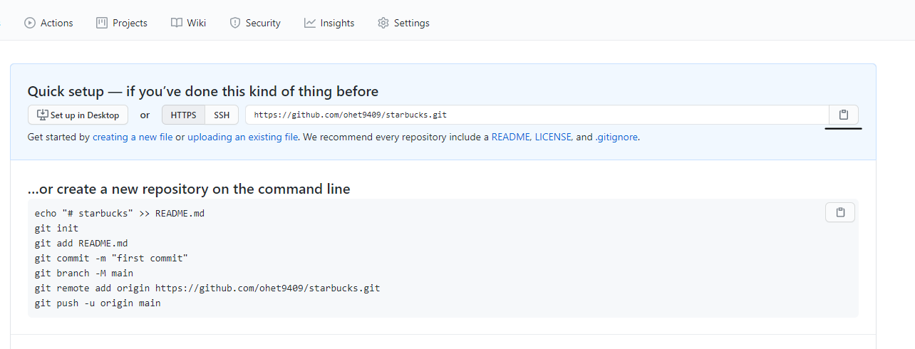확인후 원격 저장소 주소 복사