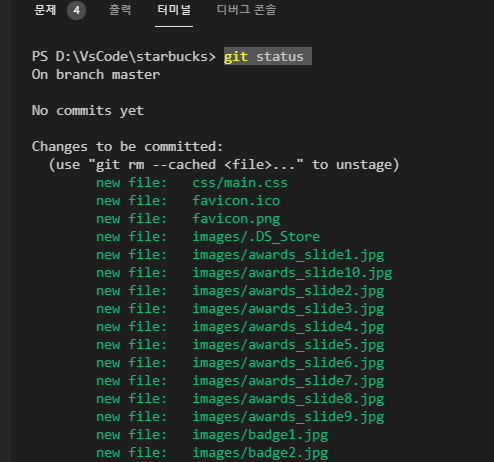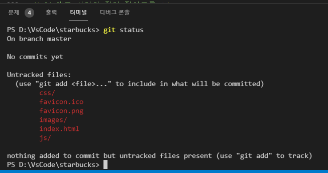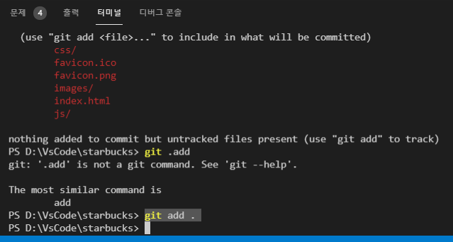 git add . 명령어를 입력하여 추적하도록 해주어야한다