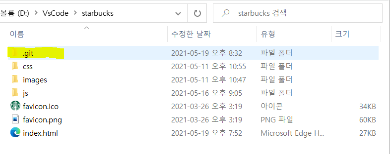 해당 명령어를 실행하면 .git이라는 숨김폴더가 생성된다