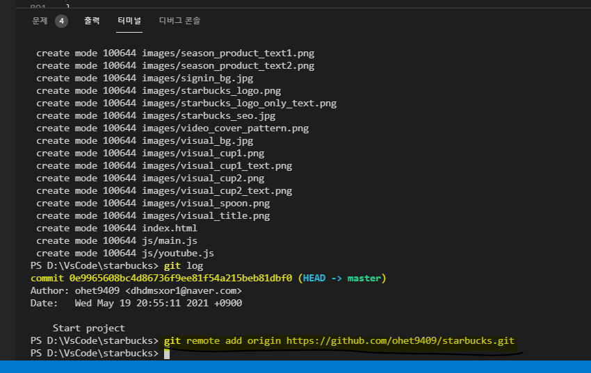 터미널 확인(터미널 경로가 프로젝트 경로와 일치하는지 확인 해주어야 함)
