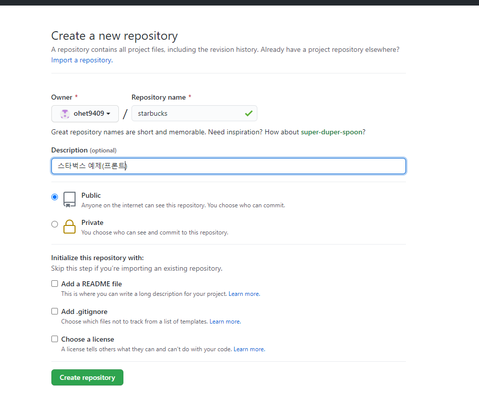 github 사이트에서 repository를 새로 만들어준다