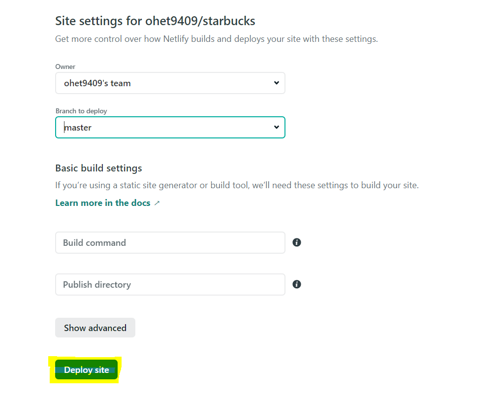 Deploy site 클릭