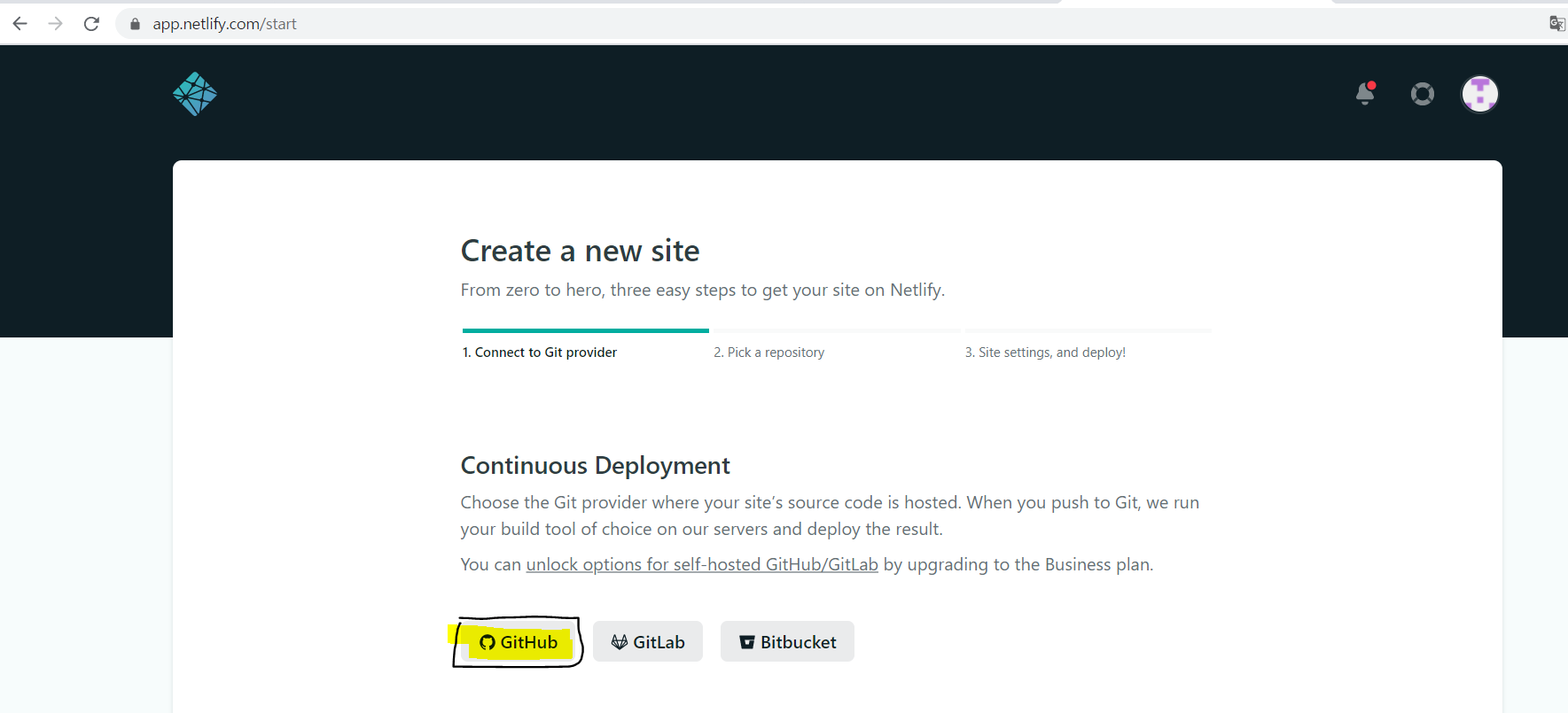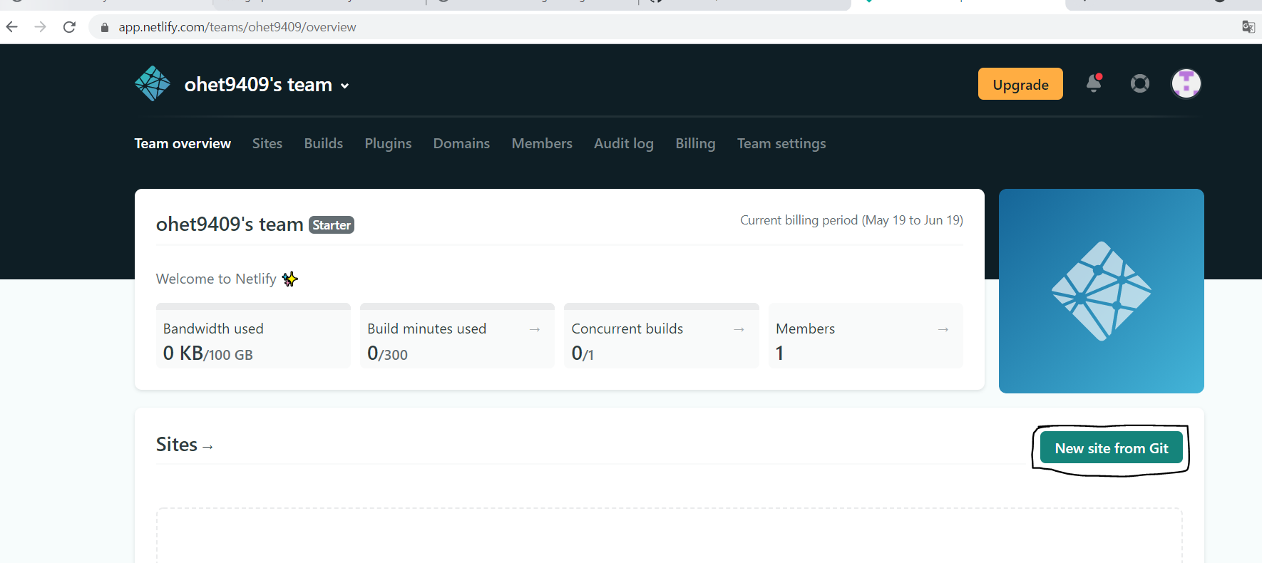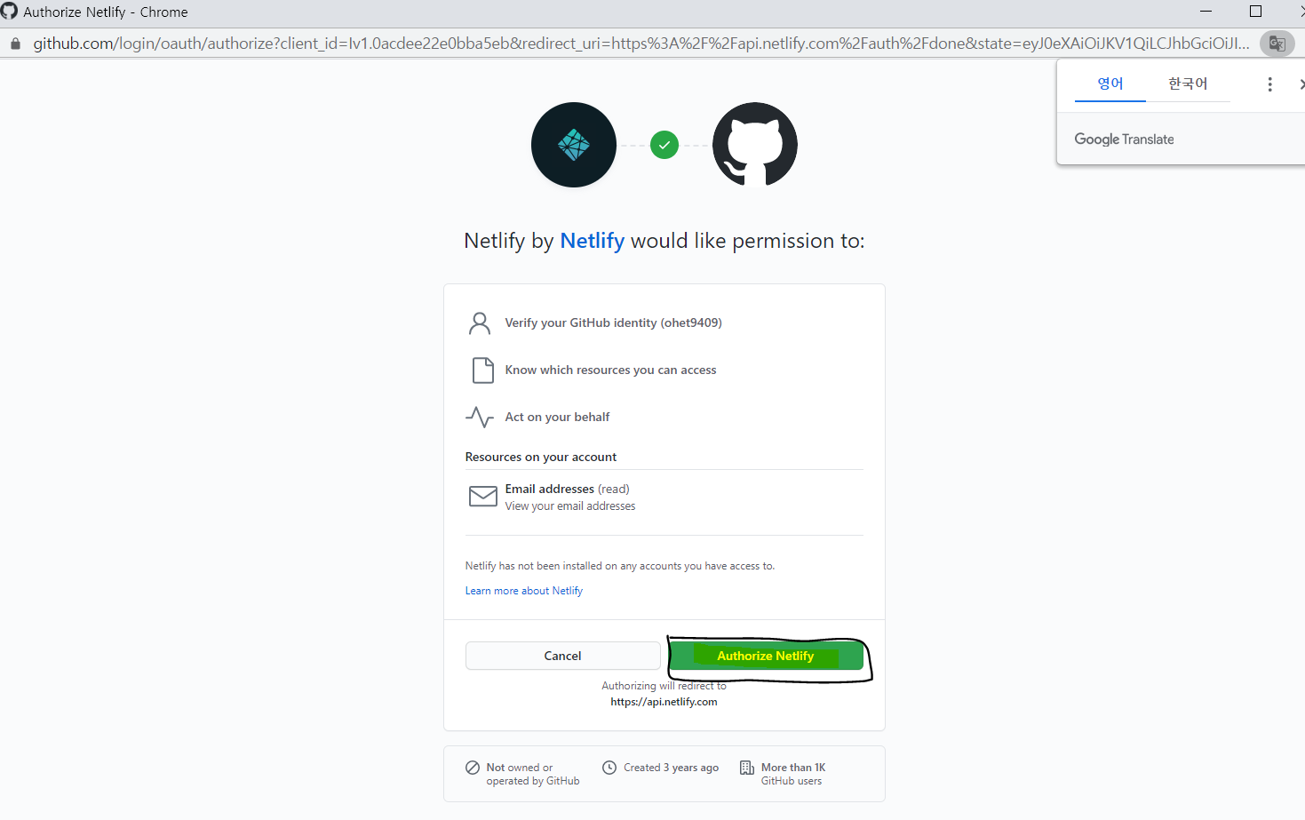 netlify에서 github계정으로 회원가입을 진행 후