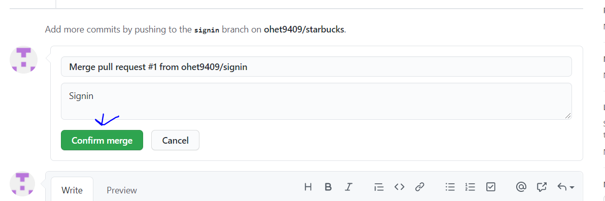 github 사이트에서 병합하는 방법