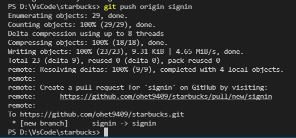 signin 이라는 브렌치를 생성