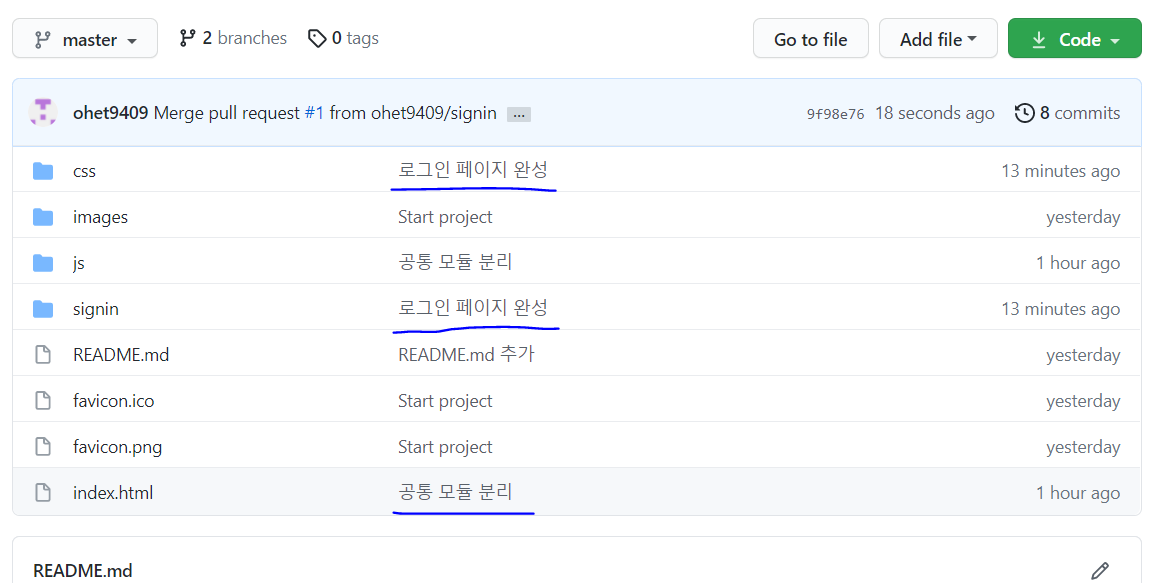 각 사용자마다 분기(브렌치)를 나눠서 개발 후 나중에 병합하는 방법을 사용하는것이 좋다