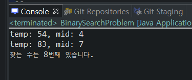 System.out.println("찾는 수는 " + mid + "번째 있습니다.");