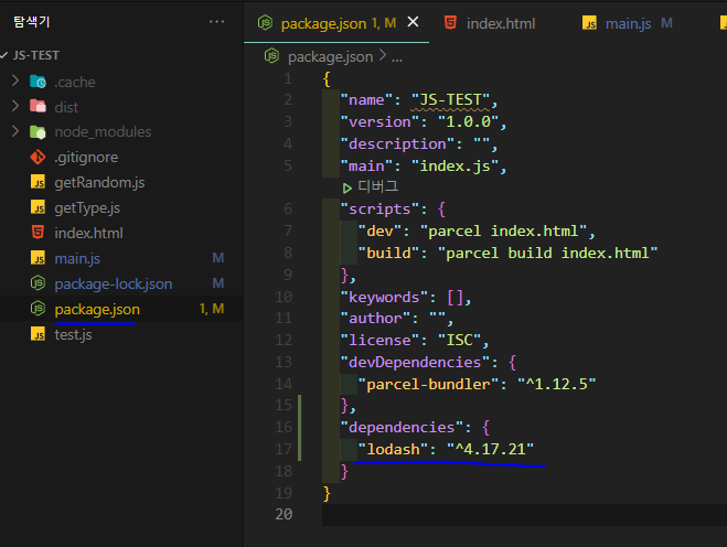 명령어: npm i lodash