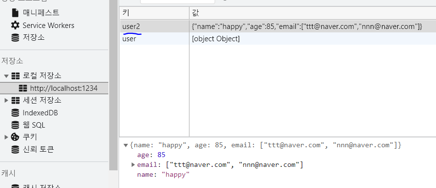 로컬 저장소 데이터 가져오기(Json 형태로 보여진다)
