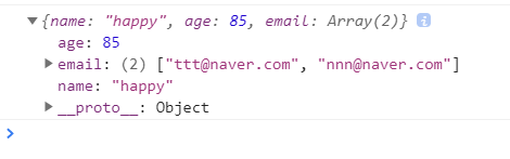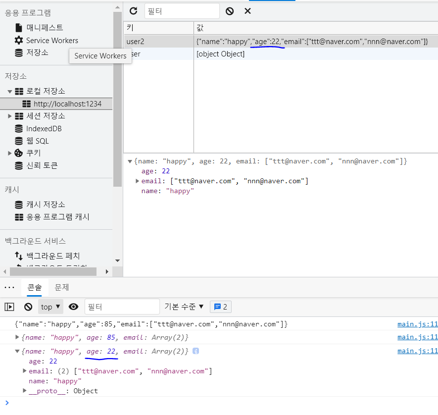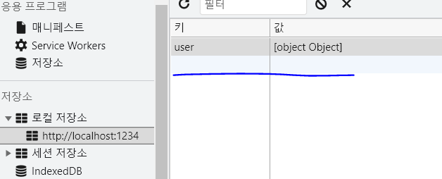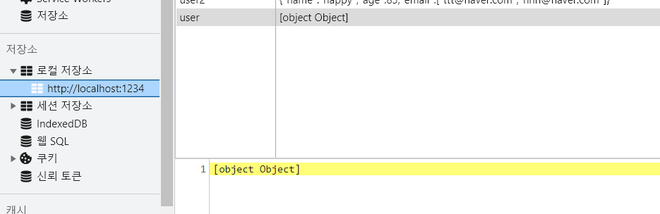 저장소에 데이터 저장(value가 Object로 나온다)