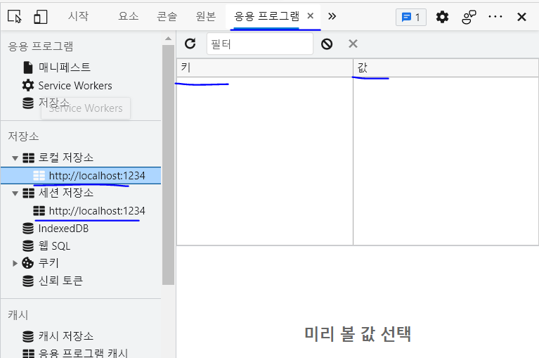 확인 방법: 개발자 도구 -> 응용 프로그램 -> 저장소 탭에서 확인 가능