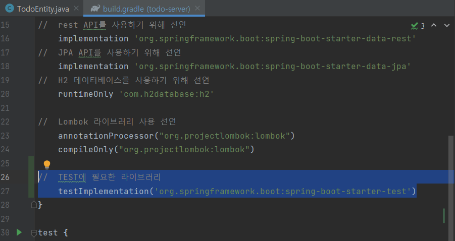 해당 위치에 파일에 테스트 코드 작성을 위한 라이브러리 선언