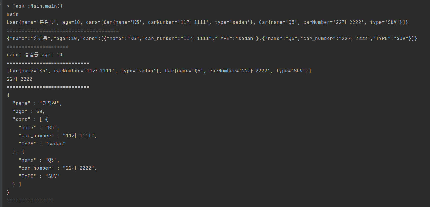 Json을 Object로 변환할 때는 default 생성자를 사용한다.