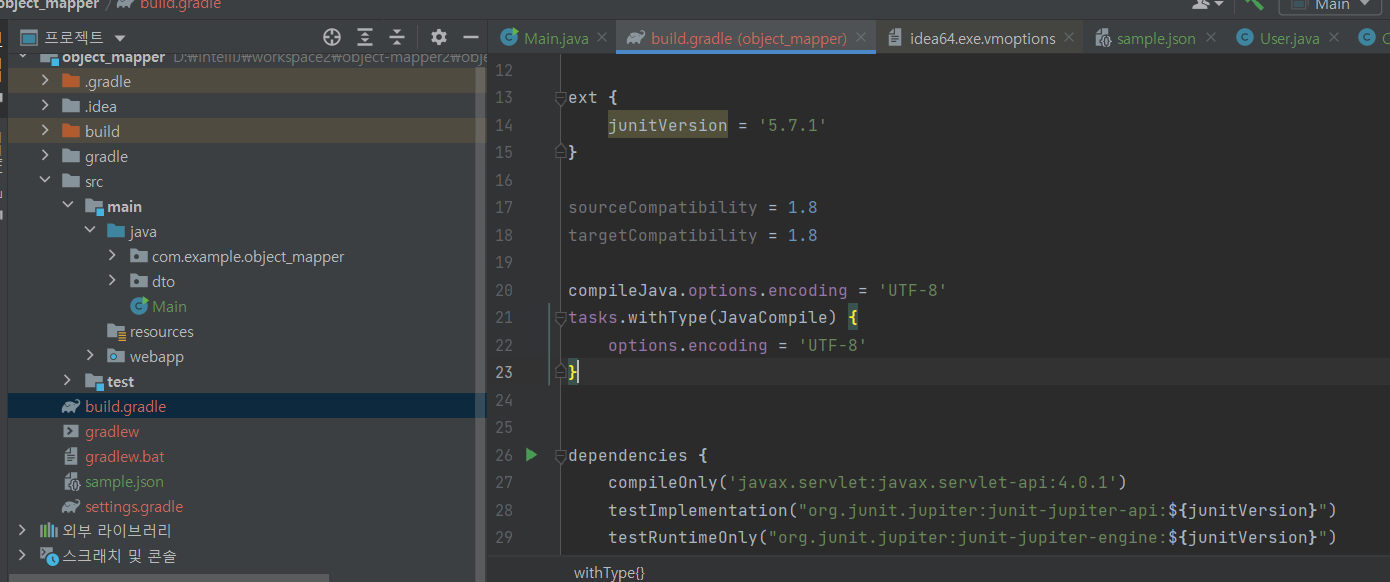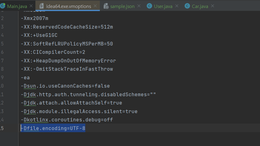 -> 파일 하단에 추가 (-Dfile.encoding=UTF-8)