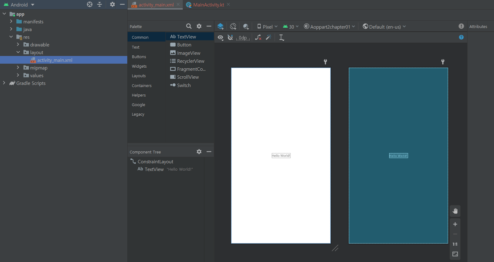 androidx.constraintlayout.widget.ConstraintLayout을 LinearLayout으로 수정