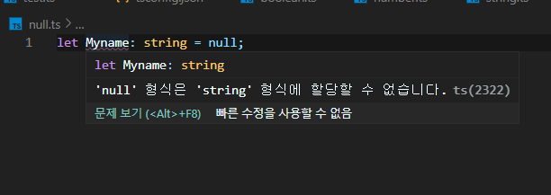 컴파일 옵션에서 '--strictNullChecks' 사용하면, null 과 undefined는 void 나 자기 자신들에게만 할당할 수 있다.