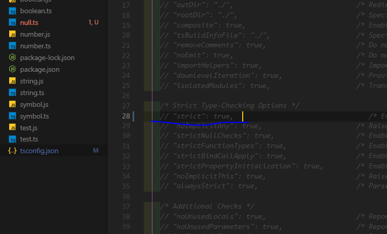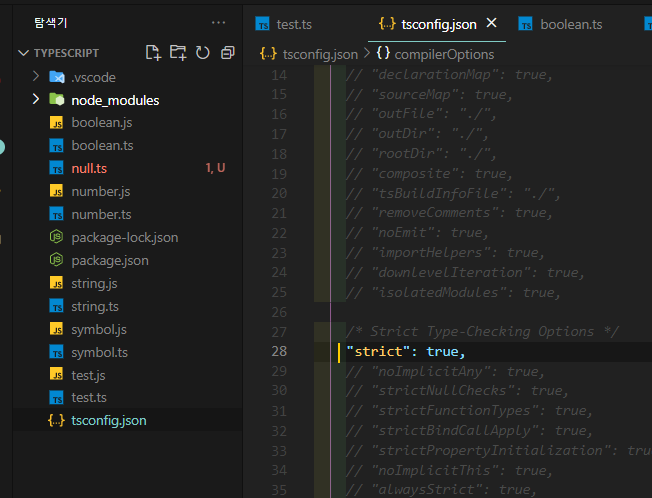 이유: tsconfig.json 파일 내부에 "strict": true, 항목에서 제어하기 때문에