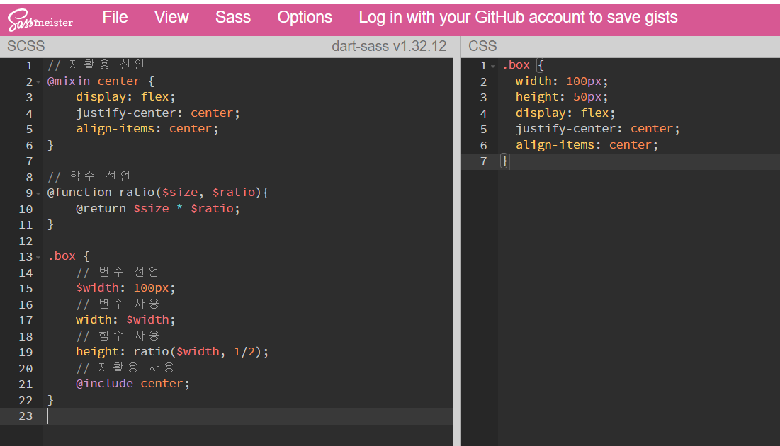 SCSS 에서 함수기능을 지원한다.