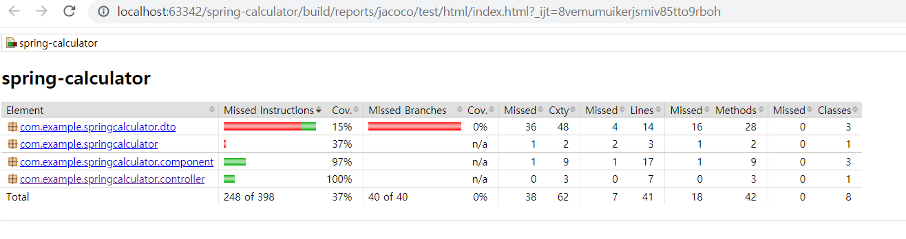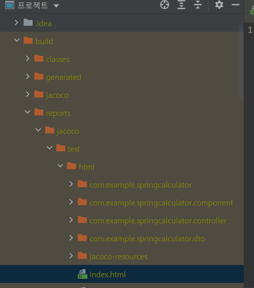 build -> reports -> jacoco -> test -> html -> index.html을 클릭한다.
