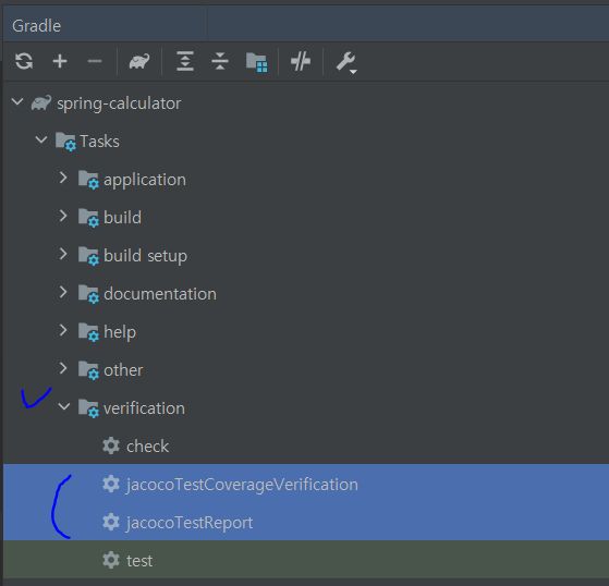 Gradle에서 jacocoTestReport를 더블 클릭해준다.