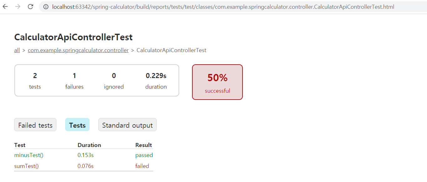 아래 파일을 실행 시키면(build -> reports -> tests -> test -> index.html)