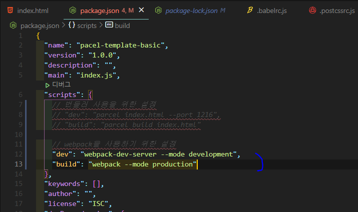 webpack을 사용하기 위해 package.json 파일을 수정한다.