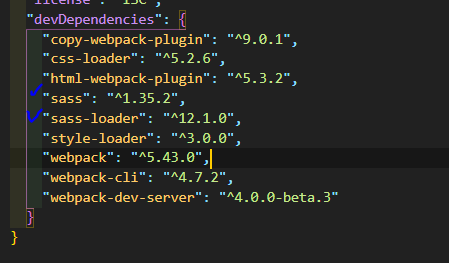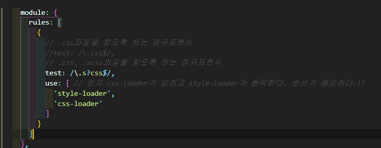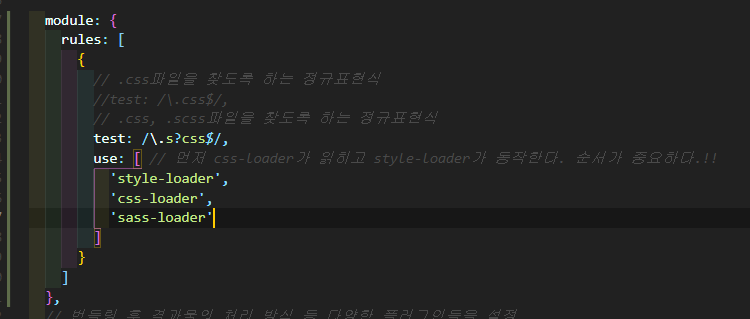 webpack.config.js파일에 sass-loader가 동작하도록 설정 (순서가 중요)
