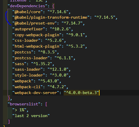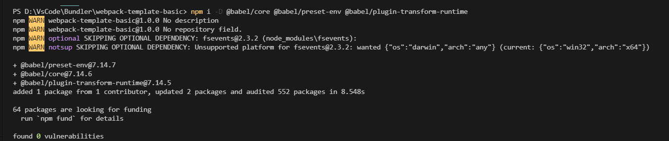 명령어: npm i -D @babel/core @babel/preset-env @babel/plugin-transform-runtime