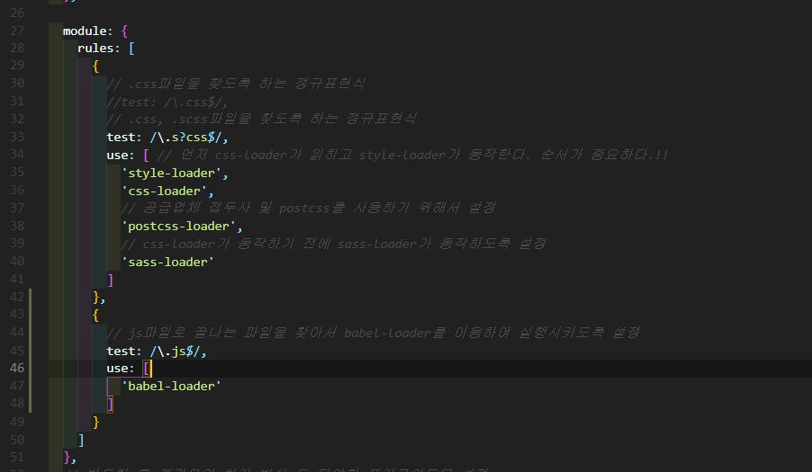 webpack.config.js 파일에서 js파일을 사용할 수 있도록 설정한다.