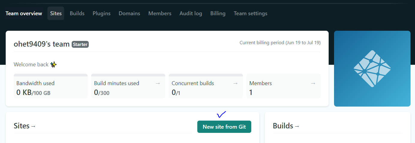 netlify 사이트 접속 -> 로그인 후 아래 화면 클릭