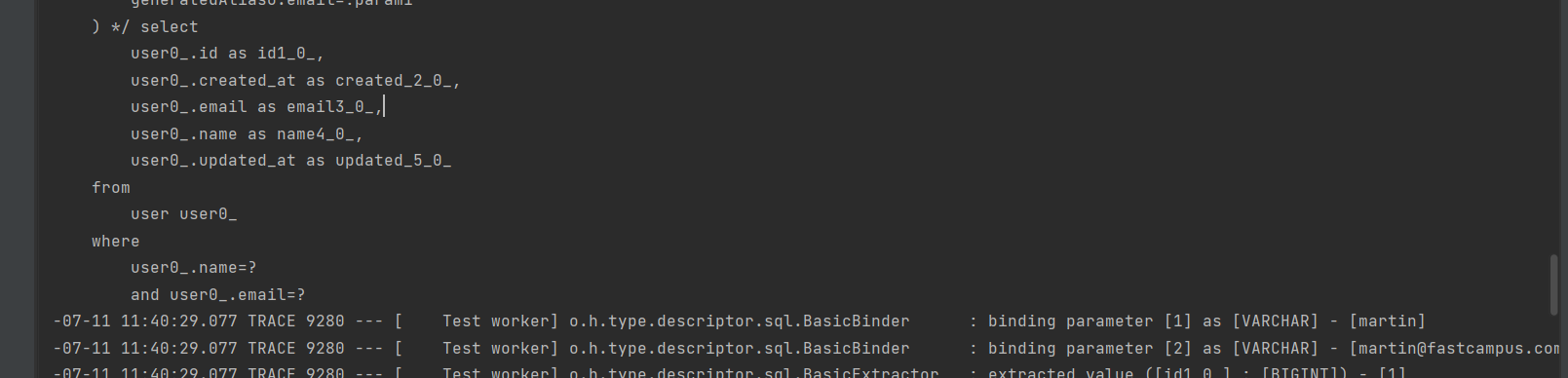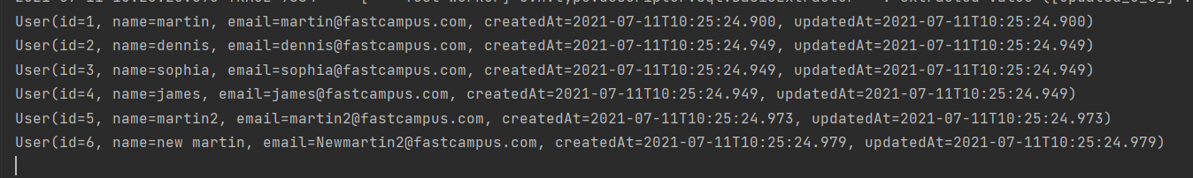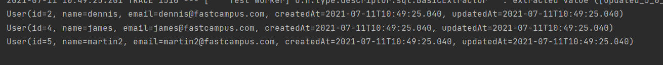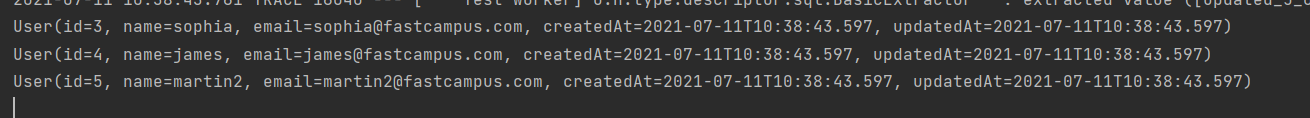 userRepository.saveAndFlush(new User("new martin", "Newmartin2@fastcampus.com", LocalDateTime.now(), LocalDateTime.now()));