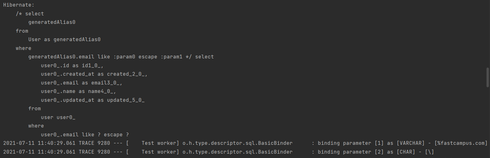 Example<User> example = Example.of(new User("ma", "fastcampus.com"),matcher);