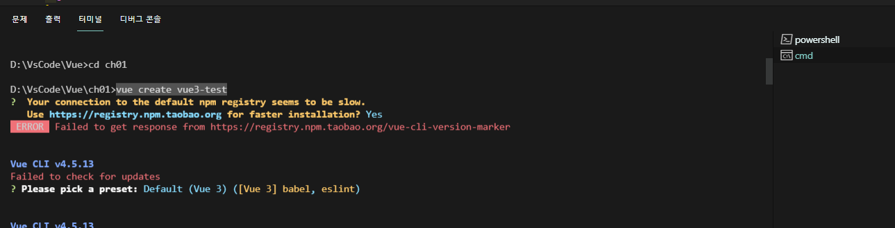 vue : 이 시스템에서 스크립트를 실행할 수 없으므로 C:\Program Files\nodejs\vue.ps1 파일을 로드할 수 없습니다.