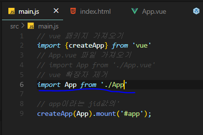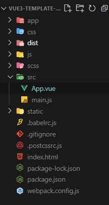 src 폴더를 생성하고 그 안에 App.vue, main.js 파일을 생성한다.