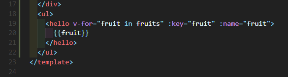 <li v-for="fruit in fruits" :key="fruit">
