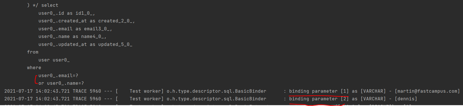 System.out.println("findByEmailOrName: " + userRepository.findByEmailOrName("martin@fastcampus.com","dennis"));