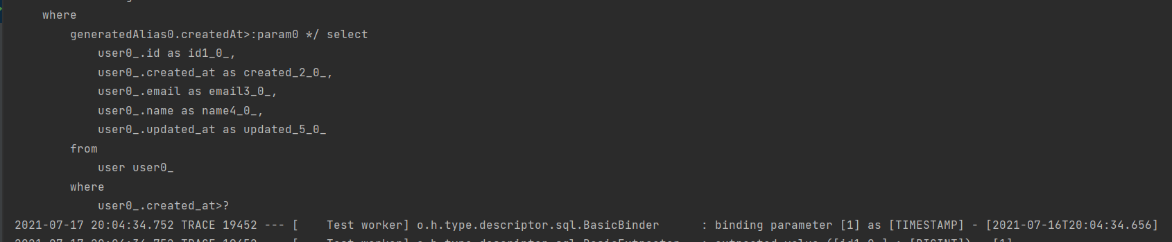 System.out.println("findByCreatedAtAfter: " + userRepository.findByCreatedAtAfter(LocalDateTime.now().minusDays(1L)));