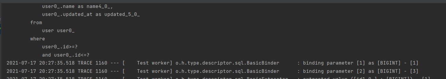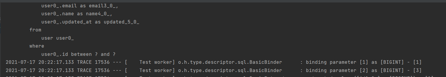 System.out.println("findByIdBetween(: " + userRepository.findByIdBetween(1L, 3L));