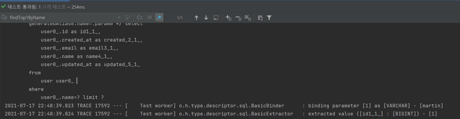 System.out.println("findTop1ByName: " + userRepository.findTop1ByName("martin"));