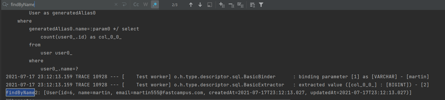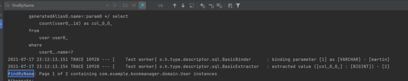 System.out.println("findByName3: " + userRepository.findByName("martin", PageRequest.of(0, 1, Sort.by(Sort.Order.desc("id")))).getTotalElements());
