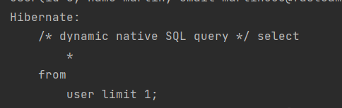 @Query(value = "select * from user limit 1;", nativeQuery = true)