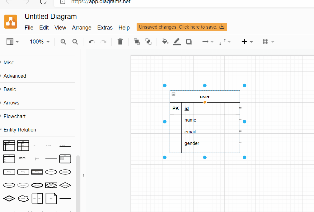 drow.io 사이트를 이용하여 entity 테이블을 생성