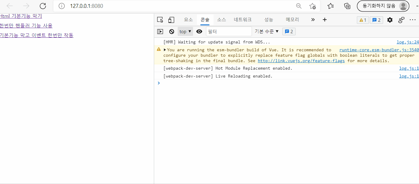 @click.prevent.once="handler"> 기본기능 막고 이벤트 한번만 작동 </a>