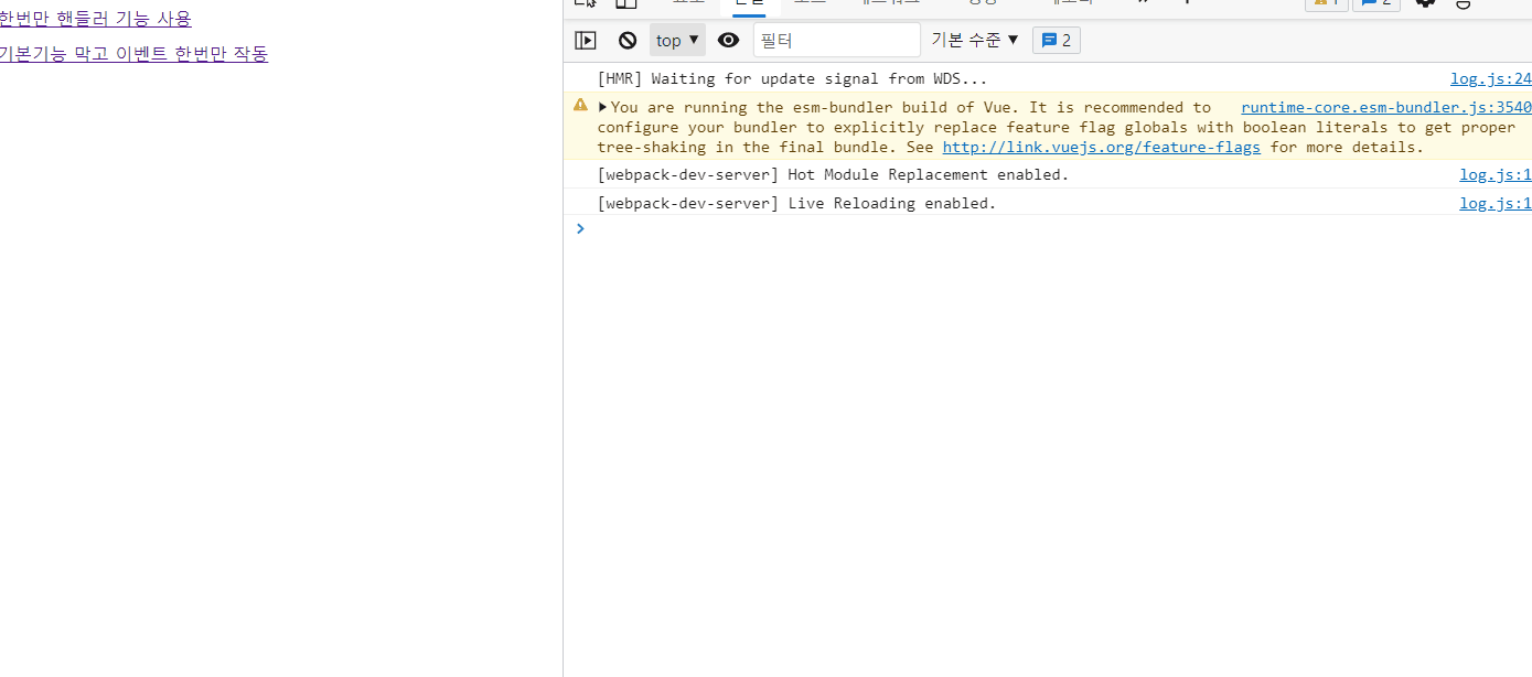 두번째 예제 (이벤트가 한번만 작동한다.( log 이벤트 확인))