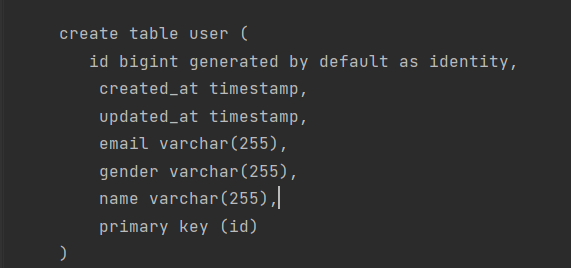 userRepository.save(new User("sophia", "sophia@fastcampus.com", LocalDateTime.now(), LocalDateTime.now()));