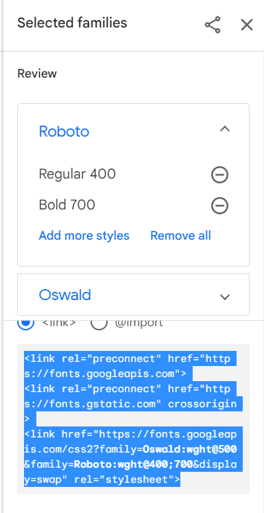 <link href="https://fonts.googleapis.com/css2?family=Oswald:wght@500&family=Roboto:wght@400;700&display=swap"