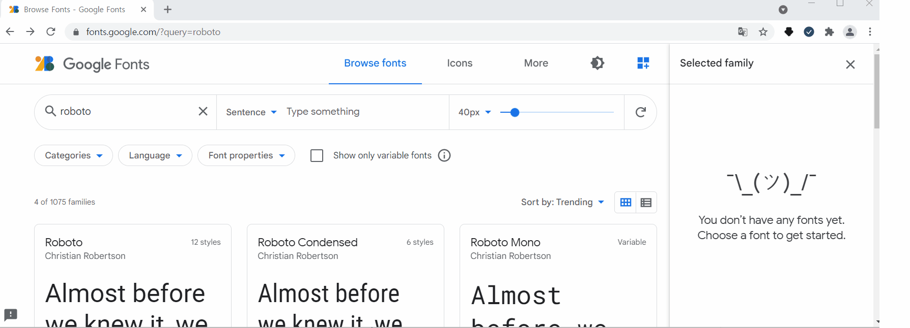 아래와 같은 방법으로 원하는 폰트를 선택한다.