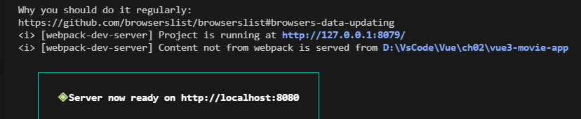 명령어 실행: npm run dev -> 포트번호 설정 확인 및 동작 확인