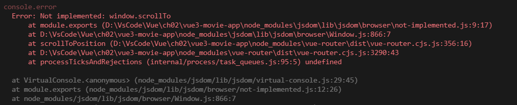Not implemented: window.scrollTo: window.scrollTo가 준비되지 않았다는 메세지