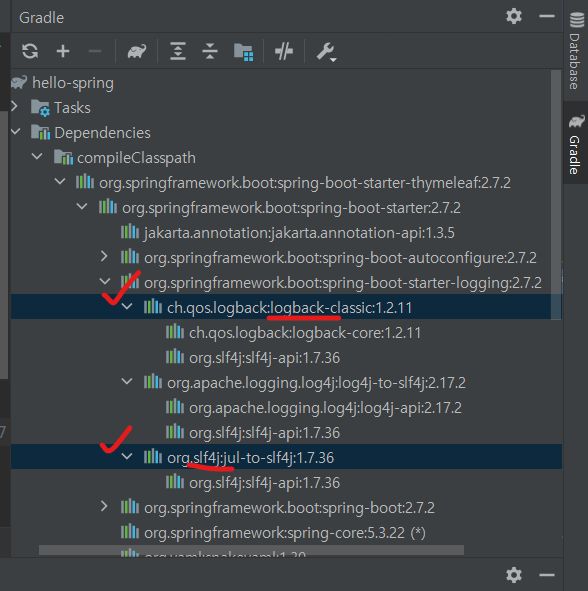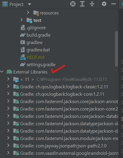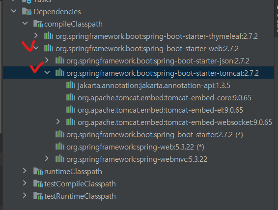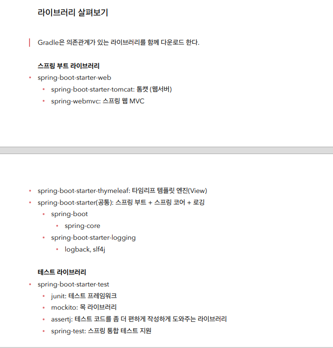 예시로 사용자는 starter-web 만 선언하였지만 내부적으로는 해당 라이브러리와 의존관계인 라이브러리도 가지고 온다.
